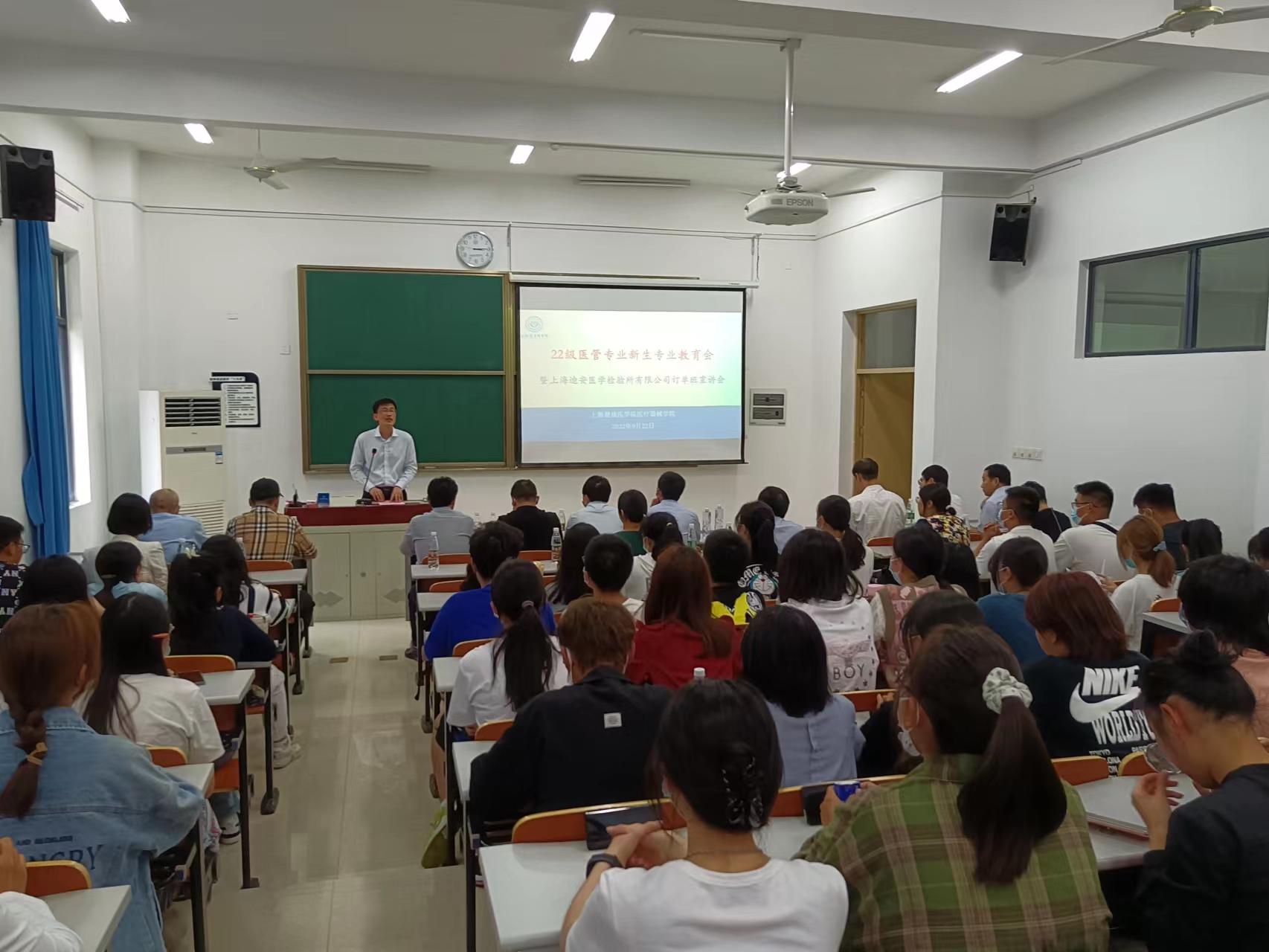 9月22日下午,22级医疗产品管理专业新生入学教学宣讲会与校园宣讲会在新南苑北楼103室举行。医疗器械学院党总支书记李晓欧、上海迪安医学检验所有限公司副总经理吴香妮、人力资源部经理李强与廖让康老师、医疗产品管理教研室主任蒋海洪副教授、医管教研室全体教师及辅导员李茜老师、郭宇嘉老师出席会议。