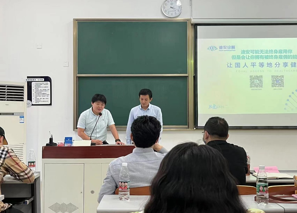 最后,蒋海洪做了总结发言。要求同学们要明确目标,积极向学长看齐,瞄准医疗器械跨国公司、上市公司、民营企业的岗位要求,积极参与迪安公司的订单班见习,认真学习医疗器械法规、技术,做好职业生涯规划。蒋海洪也对学生提出学习要求,希望同学利用好专业教师的坐班答疑与自习辅导时间,多与老师沟通交流,答疑解惑,尽早融入校园生活。