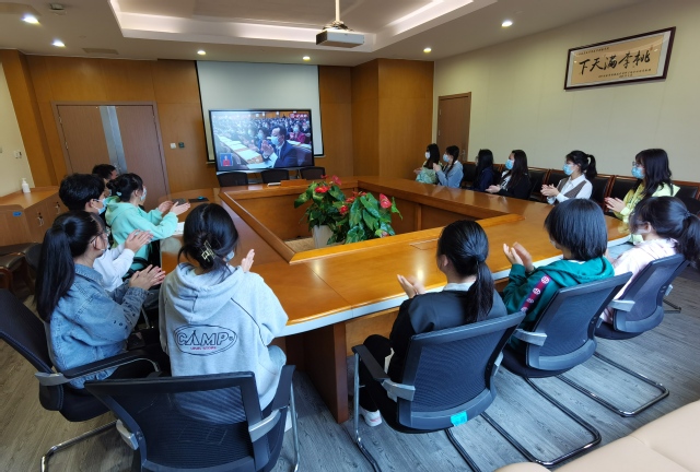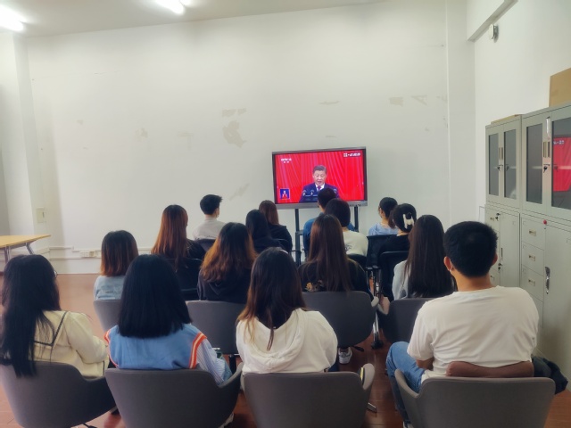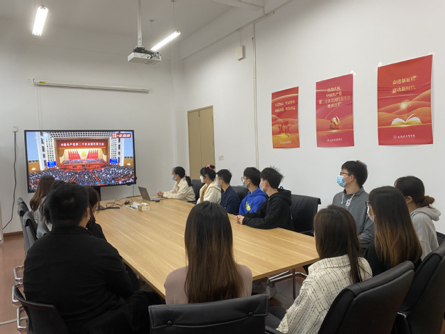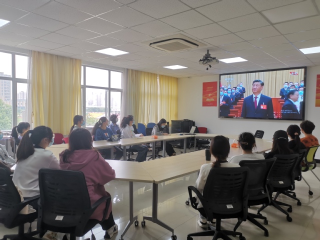 永利集团88304官网师生们认真收看党的二十大开幕会盛况。