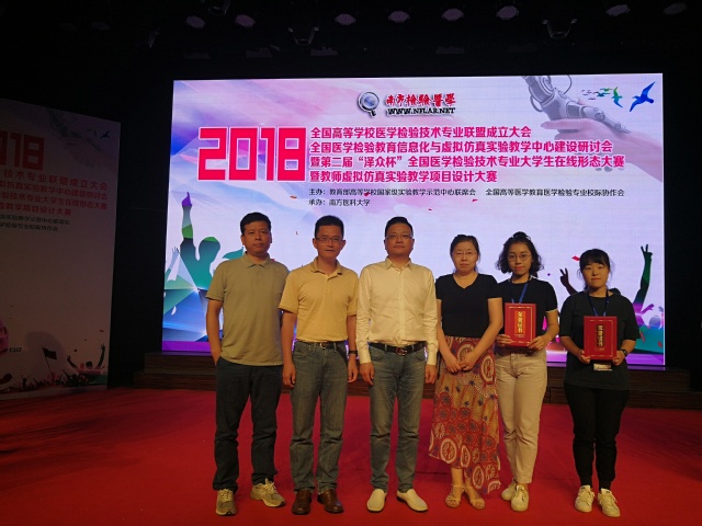 近日,由高等学校国家级实验教学示范中心联席会、全国高等医学教育医学检验专业校际协作会主办、南方医科大学承办的2018年全国医学检验教育信息化与虚拟仿真实验教学中心建设研讨会暨第二届“泽众杯”全国医学检验技术专业大学生在线形态大赛在广州举行,来自全国40多所高等医学院校医学检验专业的80多名大学生参加此次大赛。永利官网医学技术学院16级本科医学检验的沈嘉吉、邱跃珏两位同学,经过精心准备,奋力拼搏,初赛、决赛一路过关,最终分获一等奖和二等奖,同时以袁文青老师为主的指导团队获一等奖。
