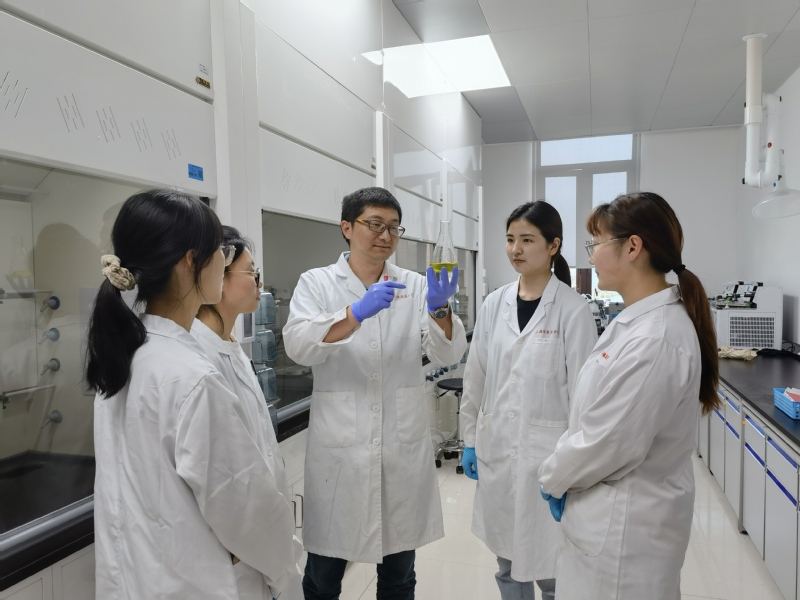 作为应用型高校,学生们的实践与操作能力是他们今后毕业走向社会最强的竞争力,孟老师看到了学生们在这方面的不足,所以他很早就组建了科创团队,学生在大二就能报名参加。开始时同学们操作水平都很差,“点板”、“过柱子”这种基本的操作都不会,孟老师就手把手教大家,教一次没学会就不厌其烦再教一次,学生做错了,他也从不严厉批评,而是自己再次示范,在这个过程中指出学生操作可能存在的问题,鼓励学生再来一次。在学生遇到实验瓶颈,出不来数据或者实验失败时,他总会第一时间给予鼓励和安慰,这就像一颗定心丸让学生平复心情从头再来。组里有一位同学是在大四才加入进来的,在此之前这位同学个体情况发生变化,其他实习单位又不能接收她,是孟老师接纳了这位学生,在她没有任何基础的情况下,带着学生一步一步学习和实验,在学生自己都要放弃时,是孟老师让她重拾了信心,顺利毕业了。