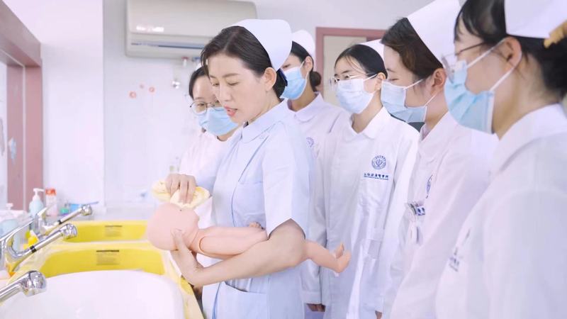 徐淑芹老师在示教新生儿沐浴