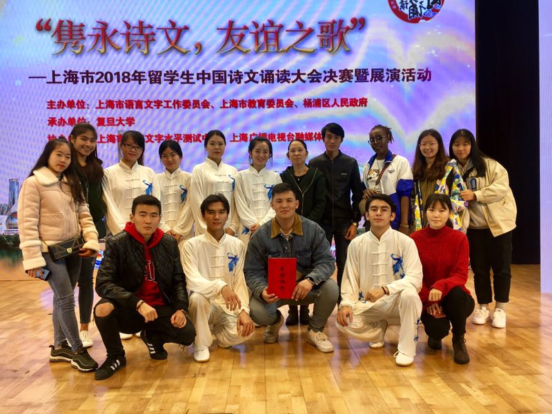 日前,上海市国际学生中国诗文诵读大会决赛暨展演活动在复旦大学新江湾校区报告厅落下帷幕。永利官网临床医学院16级来自哈克斯坦的留学生阿依奔凭借较强的对中国诗文理解力、流畅的口语表达和临场应变能力,荣获个人二等奖, 再一次与来自沪上名校复旦大学、上海交通大学、华东师范大学以及上海外国语大学的胜出选手登上领奖台;同时,永利官网参加本次展演活动的太极表演受到了现场评委和观众的一致好评。