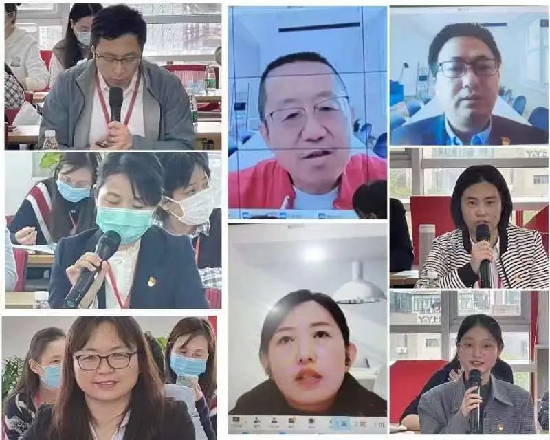 在师生交流环节,现场5位师生和线上3位教师作交流发言。发言师生结合二十大学习心得,围绕立德树人根本任务,突出学院特色,主要以健康养老、全科医生培养为切入点,共同探讨基层健康养老人才的培养问题。护理与健康管理学院的谢大明老师、陆秀琴老师和贾建芳老师分别用数据、案例等方式说明养老事业发展和养老人才培养的紧迫性,并就学院在探索如何提高健康养老人才的培养作了分享;临床医学院的李晨蕾老师紧紧围绕党中央“为党育人、为国育才”,分享了学院从“新乡医”到全科医生教学赋能的全过程。远在新疆的援疆干部张鹏老师线上分享了援疆经历,反映了贫困地区对医疗资源和教育的需求,并表示要把学习党的二十大精神转化为工作的强大动力,圆满完成援疆任务;临床医学院的王伊璇同学通过分享实习和做志愿者的亲身经历,感受到百姓对社区医院的信任感不断提升,坚定了要做一名“下得去、留得住、干得好”的健康守门人的决心;最后,线上连线护理与健康管理学院的朱爱勇院长和2022世界技能大赛特别赛“健康和社会照护”项目教练组组长徐淑芹老师,他们交流了在法国观看二十大开幕会的激动心情,讲述了吴怡欣老师以及学院保障团队为参加此次世界技能大赛备赛的心路历程和获奖情况,并表示要将健康和社会照护理念和标准整合到教学实践和人才培养中,为社会培养更多有技术、有温度、有情怀的创新型健康照护人才。