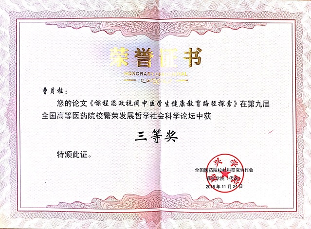 论坛上,全国医药院校社科研究协作会王键会长致开幕辞,嘉兴学院党委书记黄文秀致欢迎辞。山西医科大学党委书记段志光教授和嘉兴学院红船研究中心肖纯柏教授分别作《健康中国建设与医学院校人文教育责任担当》、《弘扬红船精神,不忘初心使命》主旨报告。论坛还邀请了陆军军医大学翟建才教授等10位教师作了交流发言。最后,王键会长宣布了获奖论文名单(一等奖5名、二等奖8名、三等奖10名),马克思主义学院曹月柱副院长提交的《课程思政视阈中医学生健康教育路径探索》荣获三等奖。
