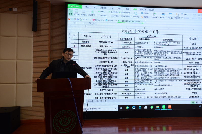 会上,校长、党总支副书记汤磊首先对《2019年学校重点工作》做了具体的汇报和部署。他要求各部门、系部要抓住重点工作,明确学校发展新任务。抓住机遇、提高站位、以全新的姿态携手开创学校工作新局面。