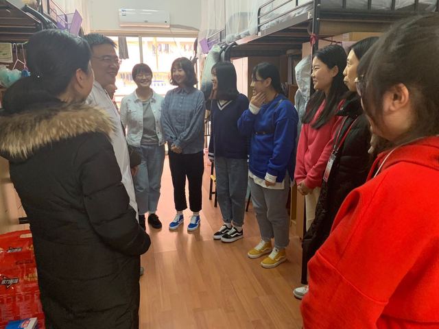 基础医学院教师们带上新学期大礼包,先后前往北苑11号楼男生宿舍以及12号楼女生宿舍进行慰问。杨院长细致入微地关心同学们在校的生活情况、学习状况,希望大家能够在预科阶段打好基础,明确自己的努力方向,顺利完成现阶段的学业。程书记鼓励同学们像把宿舍打理得干净整洁、井井有条一样,规划好自己的人生,能够明确努力方向,对未来的学习要做到有计划、有目标。在交流中,教师们对同学们寒假中的学习实践生活以及勤奋学习的状态表示了赞扬,并就本学期的学习安排提出了许多宝贵建议,祝愿他们在校学习生活一切顺利,取得理想成绩,更上一层楼。