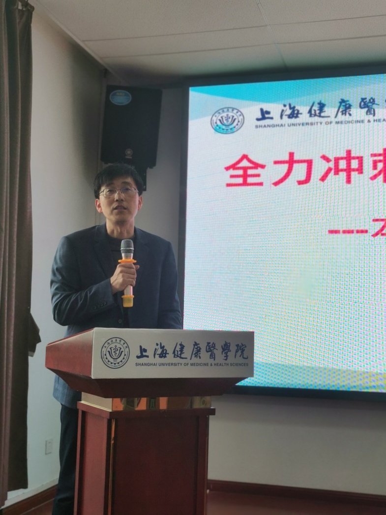 医疗器械学院党总支书记李晓欧做冲刺动员。号召全体教师一要增强信心,高度重视,以最好的状态迎接评估;二要理清思路,做实做细各项工作;三要责任到人,强化督查;四要担当责任,严于律己。全院师生树立大局意识,把思想统一到评估大局上来,把压力化为动力,视挑战为机遇,全方位展示医疗器械学院的办学实力、办学水平、办学特色和文化风貌。