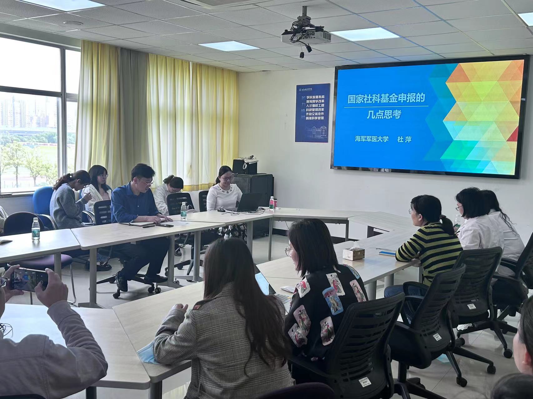 杜萍作了《关于国社科基金申报的几点思考》报告,介绍了2023年国家社会科学基金项目申报要求、国社科基金项目分类、通讯评审意见表指标、申报资格要求,并详细阐述了如何把握高价值研究方向、如何提升论证说服力。