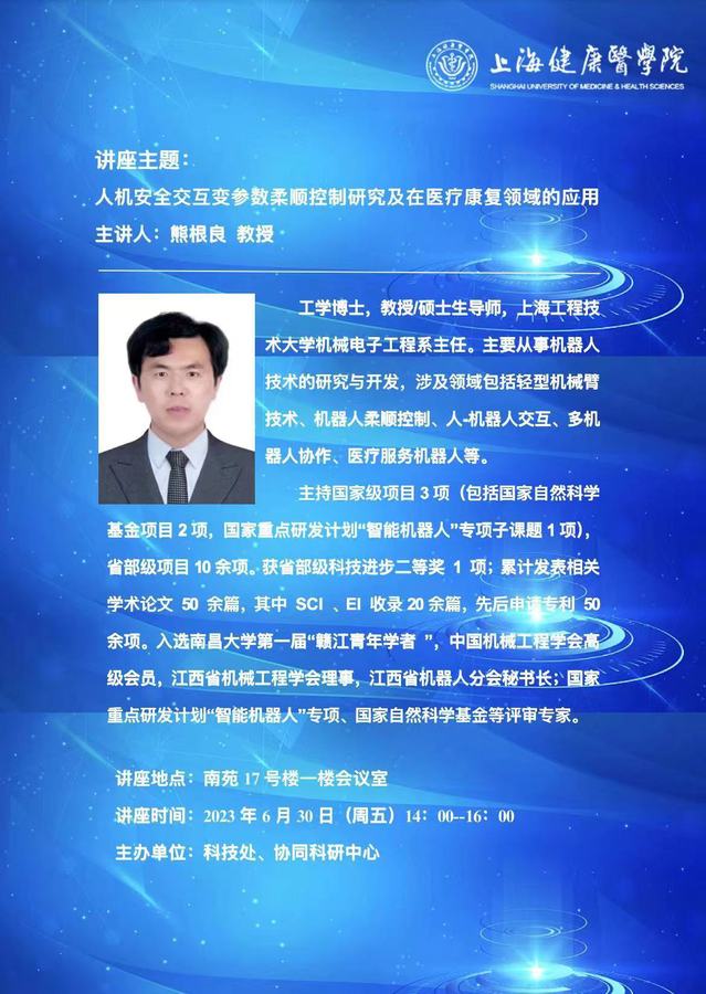 学术沙龙:人机安全交互变参数柔顺控制研究及在医疗康复领域的应用