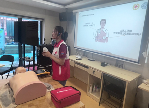 暑期来临,夏日炎炎,溺水、中暑等意外事故不断增加,严重危害青少年的生命安全。为提高青少年在突发事故中的急救意识和自救互救能力,建立其“健康”意识,永利集团88304官网红十字会学生分会“健康有‘医’靠”暑期社会实践团队于7月27日下午来到了上海市浦东新区上钢新村街道济阳二村社区,为各位青少年及其家长开展以“以健康之名,传急救之志”为主题的急救知识科普讲座。