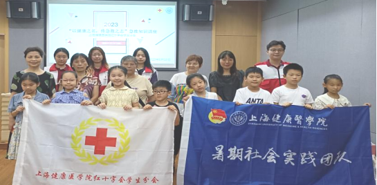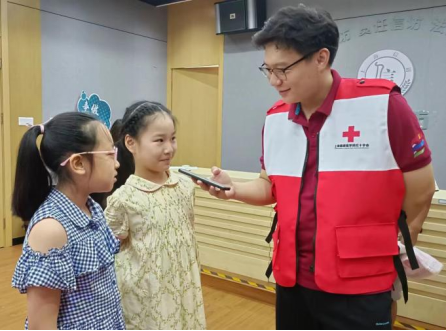 8月9日,团队来到了上海市黄浦区半淞园路街道未成年人保护工作站,聚焦未成年人应急救护安全教育,开展了主题为“以健康之名,传急救之志”的防溺水、防中暑安全教育、自救技能教学、CPR(Cardiopulmonary Resuscitation,心肺复苏)以及AED(Automated External Defibrillator,自动体外除颤仪)的使用方法科普讲座。