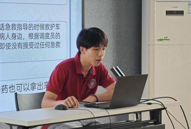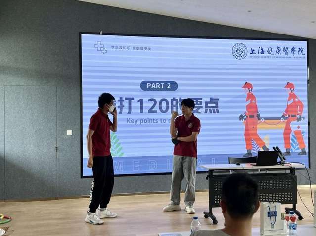 7月13、14日,团队成员分别来到上海市金山区枫泾镇和浦东新区北蔡街道,以“学急救知识,保人民健康”为主题、聚焦120院前急救开展科普宣讲。同学们生动形象地为居民们介绍上海市院前急救体系、院前急救处置流程、发展水平等,让居民朋友们了解上海市院前急救队伍的力量,增强居民对于急救的信任,以便在关键时刻才能做到冷静、高效地配合急救医师们完成急救任务,为患者保驾护航。