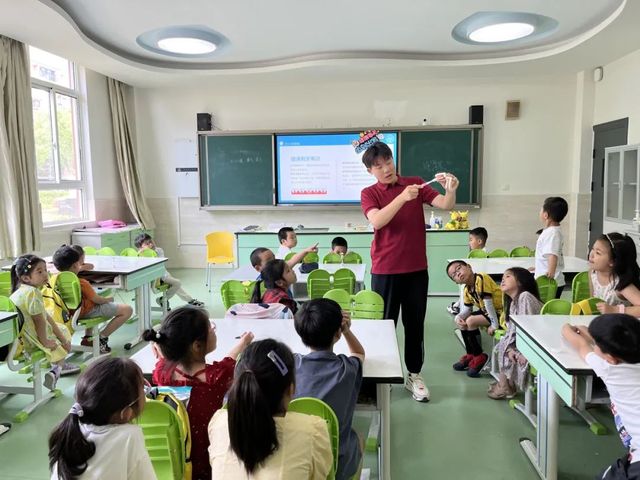 在宣讲的过程中,团队成员对健康牙齿进行了着重介绍,告诉孩子们应该如何判断自身的口腔健康状况。引导同学们举一反三,争当自我健康的啄木鸟医生,对自身的牙齿健康情况实现初步的检查。并且根据同学们反映的口腔小烦恼以及不理解的内容进行及时的解答,诸如“‘龅牙需要整牙吗?’‘牙齿需要如何美白?’‘长了两排牙齿怎么办?’”等问题进行简单回答,叮嘱同学们在日常生活中要爱护牙齿,养成好习惯。