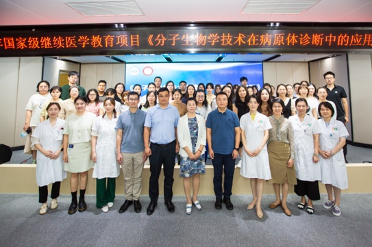 为落实《“健康中国2030”规划纲要》《国务院办公厅关于加快医学教育创新发展的指导意见》等文件精神,不断推进医学教育创新发展,提高从事分子生物研究方向专业人员的技术,深入推广“分子生物学技术在病原体诊断”的新技术,永利集团88304官网主办、奉贤区南桥镇社区卫生服务中心承办的2023年国家级继续医学教育项目《分子生物学技术在病原体诊断中的应用》(项目编号:2023-11-01-235 (国))培训班于9月13日至15日在奉贤区南桥镇社区卫生服务中心成功举行。来自奉贤区中心医院、周浦医院、江湾医院、奉贤医疗机构等专业人员50余人参加。本次培训班着重介绍总结当前临床诊断中分子生物学检验技术的应用成果,融合介绍分子生物学最新技术在病原体筛查和诊断中的尝试、发展和研究,前沿临床研究过程中的空间转录组测序、DIA-MS、CRISPR/Cas技术、穿戴式诊断设备等新兴技术。
