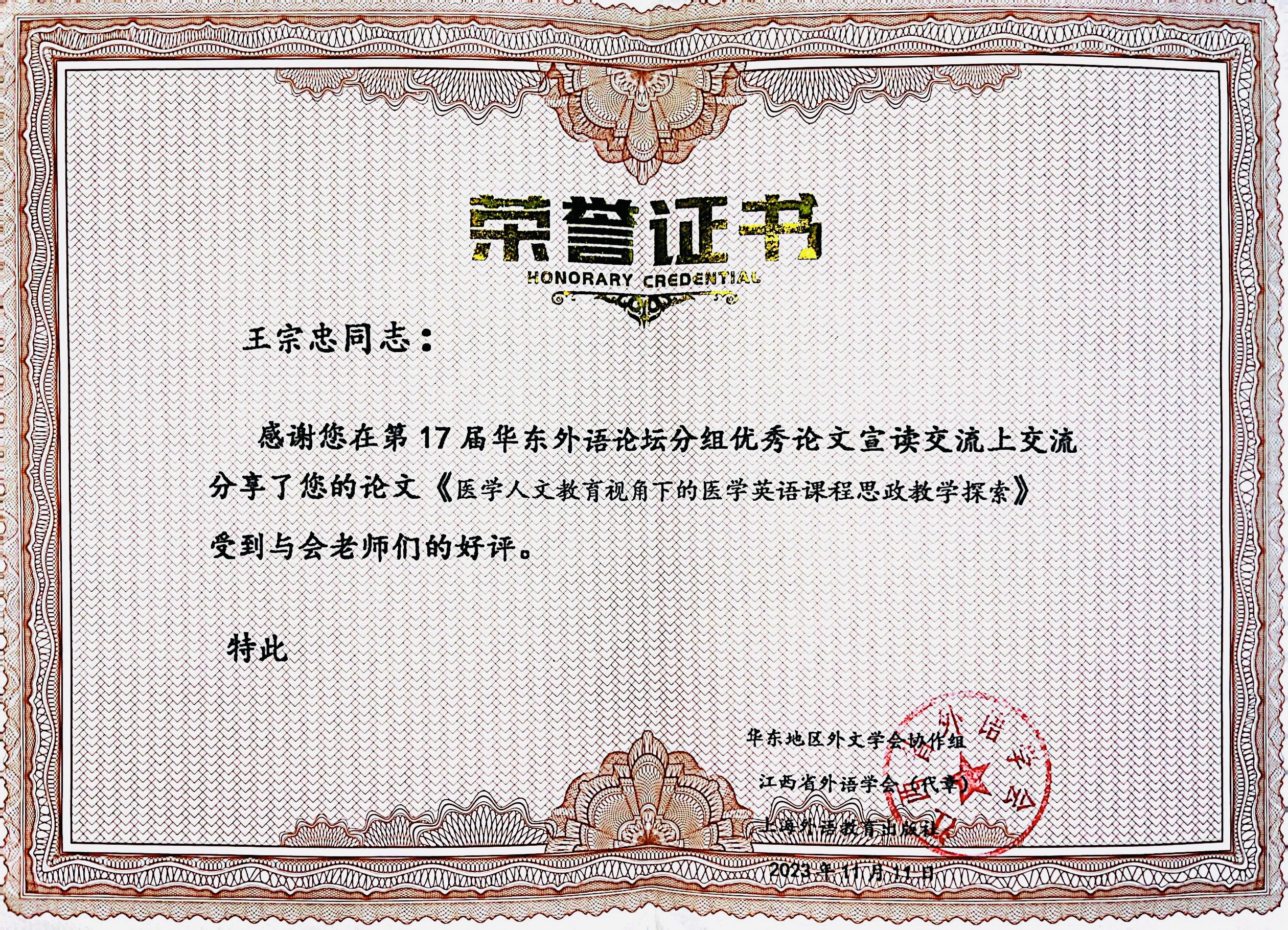 外语教学部王宗忠老师、阮俊斌老师应邀在2个分论坛就“医学人文教育视角的医学英语课程思政教学探索”“基于斯坦纳翻译理论的临床医学文献译后编辑课程设计与实施”两个话题,与同行进行了深度讨论和交流。在“医学人文教育视角下的医学英语课程思政教学探索”学术话题中,王宗忠老师强调,医学人文教育是医学教育的重要组成部分,对于培养具备高尚医德和精湛医术的医学人才具有重要意义。在医学英语课程中融入思政教育元素,可以使学生在学习英语语言的同时,培养其人文关怀精神和社会责任感。王宗忠老师还分享了教学部在医学英语课程思政教学方面的实践经验,为与会者提供了宝贵的参考。