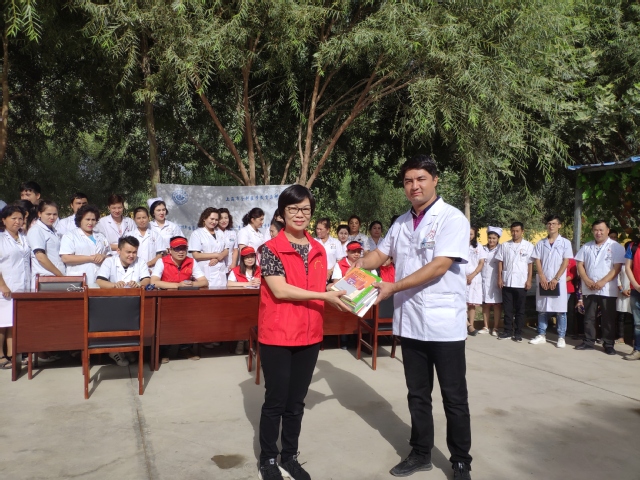 8月18日,专家们远赴莎车县塔尕其镇卫生院进行义诊、健康宣教、社区卫生状况调研和赠书等活动。在莎车县服务期间,来参加义诊的患者络绎不绝。期间,医患之间发生了许多动人的故事,有的患者一脸痛苦前往义诊,却开怀笑着重回健康生活;有的被病痛折磨十数年,感觉康复无望,却因义诊看到了希望;更有一些乡民起初连病痛发生的原因尚且不明确,经过诊治后,不仅病情明朗,而且困扰多年的疼痛有了缓解的办法。