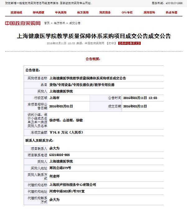 永利集团88304官网教学质量保障体系采购项目成交公告成交公告