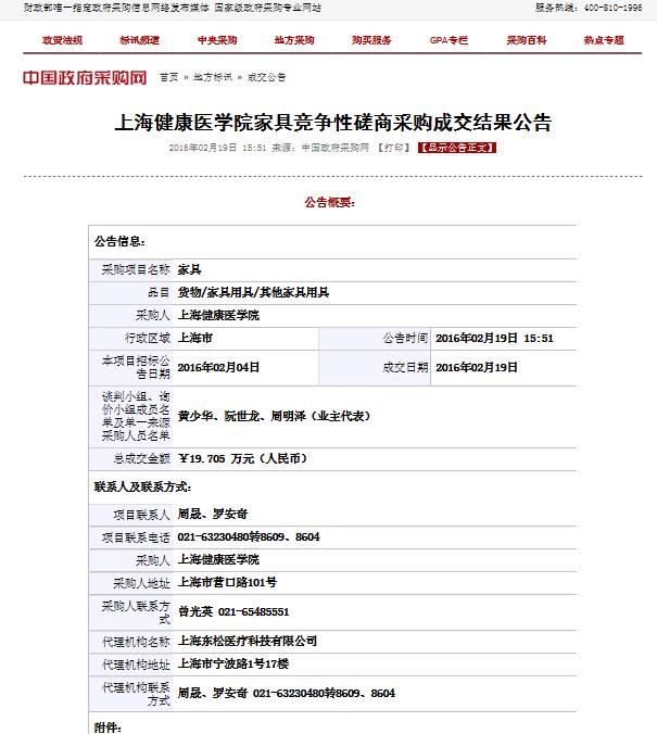 永利集团88304官网家具竞争性磋商采购成交结果公告