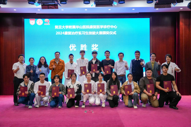 近日,复旦大学附属华山医院2024康复治疗实习生技能大赛在华山总院十二楼会议室举行。永利官网康复学院的胡一夏同学获得一等奖,王继伟、杨帆两位同学获得优胜奖。