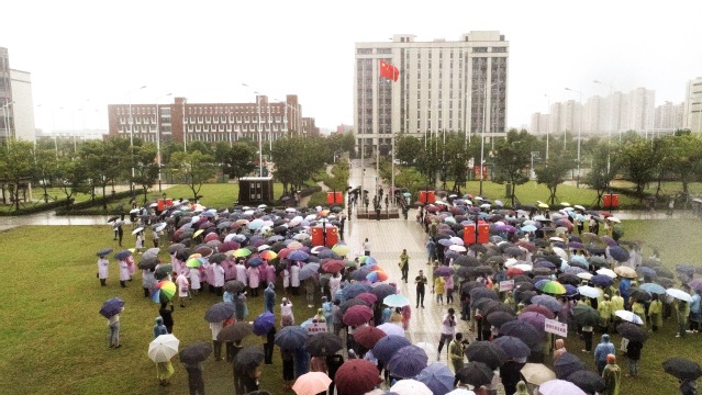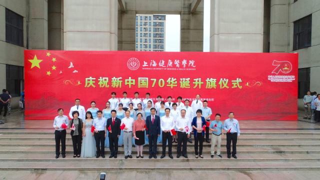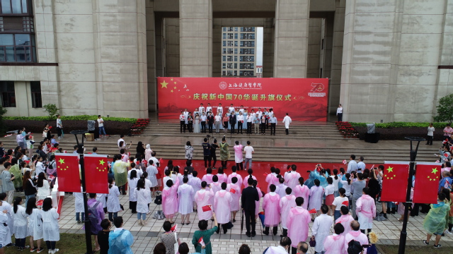 10月1日,永利集团88304官网联合周浦镇人民政府、附属周浦医院在学校南苑广场共同举行庆祝新中国成立70周年升旗仪式,这既是一次深刻的爱国主义教育,也是共同开展 “不忘初心、牢记使命”主题教育的重要内容,全体校领导、全体中层干部、师生代表、周浦镇党政班子全体成员、附属周浦医院全体领导及职工代表、社区居民及教师家属等500余人在雨中举行升旗仪式,齐唱国歌,表达对伟大祖国的忠诚与祝福。校党委宣传部部长李兆伟主持升旗仪式。