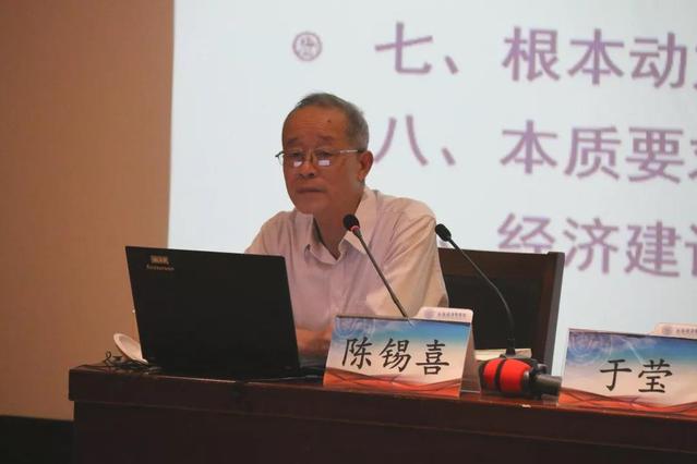 陈锡喜教授概括了《纲要》一书的特点,围绕三大部分进行导读:第一、“知其然”即知道新思想是什么?他将《学习纲要》的内容归纳为“创立背景和历史地位”、“定位方向”、“战略布局”、“五位一体”、“内外部保障”、“党的领导”,详细阐述了“四个全面”战略布局、“五位一体”总体布局、“内外部保障”、“党的领导”为什么是新思想的重点内容。第二、“知其所必然”即知道新思想产生的客观依据。陈锡喜教授从历史、现实和未来三个维度阐述新思想产生的必然性,即新的主要矛盾孕育了新思想;新的世界方位激发了新思想;新的历史变革蕴含了新思想;新的征程开启催生了新思想。第三、“知其所以然”即知道新思想是如何形成的?陈锡喜教授谈到,习近平总书记是新时代中国特色社会主义思想的主要创立者,他具有马克思主义理论家的深刻洞察力、敏锐判断力,新思想是战略定力和战略思维的统一。