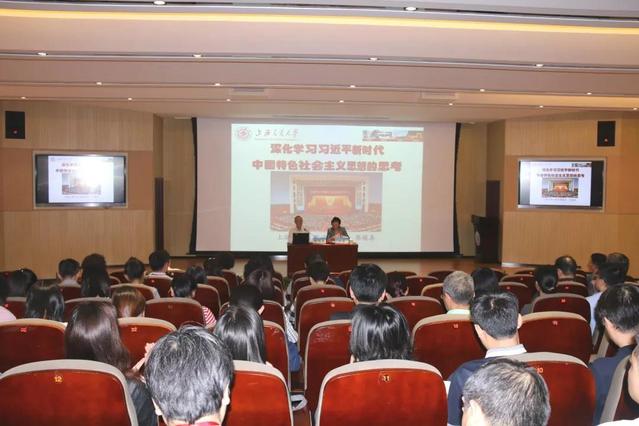 9月23日下午,校党委在北苑1号楼200人报告厅举行“不忘初心、牢记使命”主题教育专题辅导报告。上海交通大学讲席教授陈锡喜来校作《习近平新时代中国特色社会主义思想学习纲要》(下称纲要)导读。全体中层以上干部、马院全体老师、全体辅导员参加。报告会由党委副书记、主题教育领导小组常务副组长于莹主持。