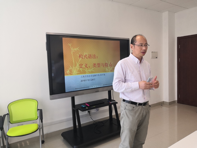 2019年10月24日,上海立信金融会计学院外国语学院的邵军航教授为永利集团88304官网外语教学部的全体教师做了题为“构式语法:定义、类型与特点”的讲座。