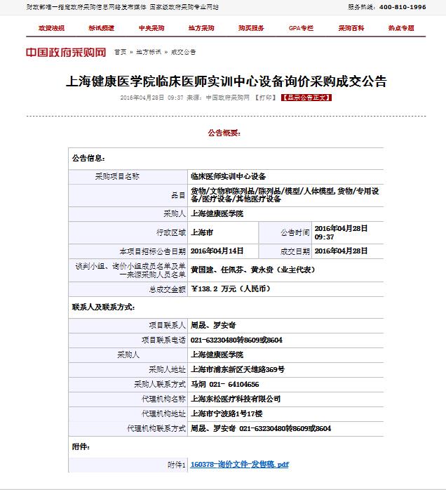 永利集团88304官网临床医师实训中心设备询价采购成交公告