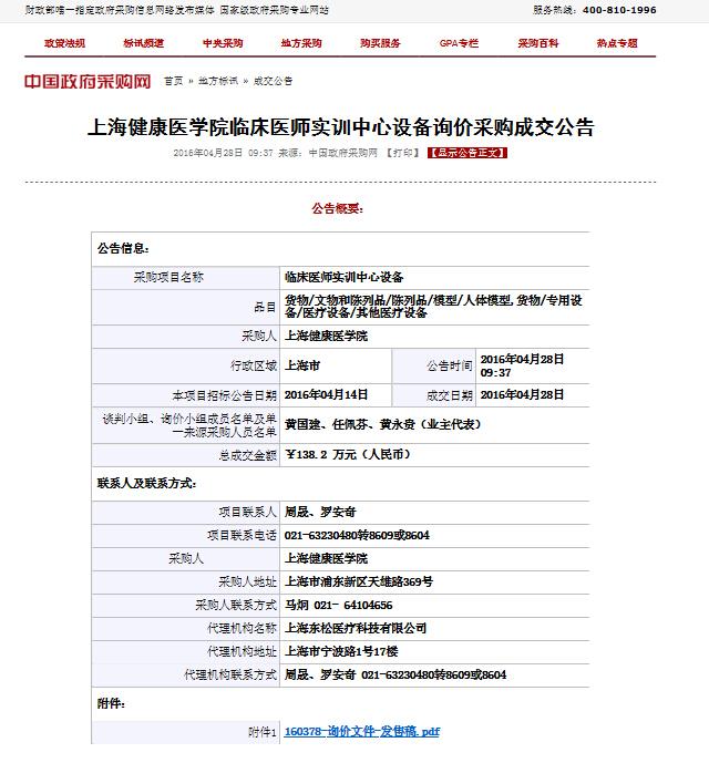 永利集团88304官网临床医师实训中心设备询价采购成交公告