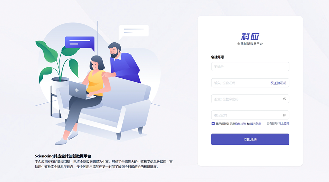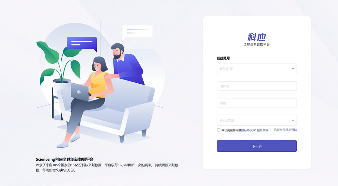 在校园网络范围内,通过电脑或平板访问平台官网:https://www.scienceing.com
