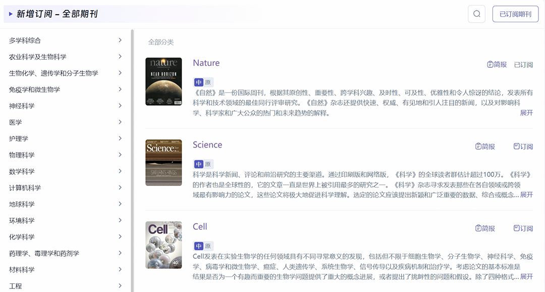 科应收录范围涵盖全球期刊、机构知识库、预印本平台,内容覆盖自然科学、工程技术、经济管理等320个学科领域,集成文献检索、文献解读、前沿跟踪、文献管理、文献分析、文档翻译等功能,一站式解决老师和同学们的多元化、个性化需求。