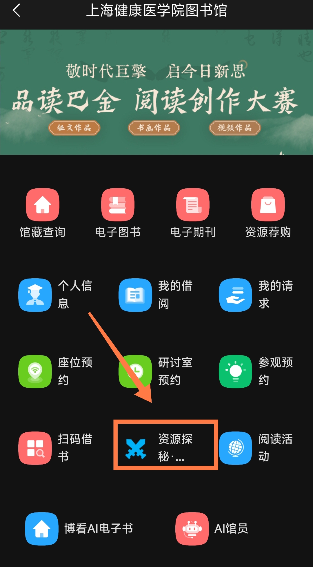 打开学习通,选择“永利集团88304官网图书馆”,点击“资源探秘·阅见智图”,即可参加挑战答题。