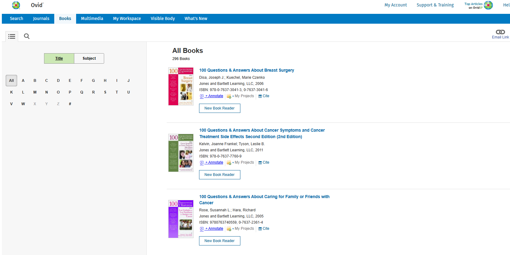 永利官网OVID平台还订购了296册LWW电子书的永久访问权,如《Nursing Know-How: Evaluating Signs & Symptoms》、《Physical Medicine & Rehabilitation Pocketpedia》等。