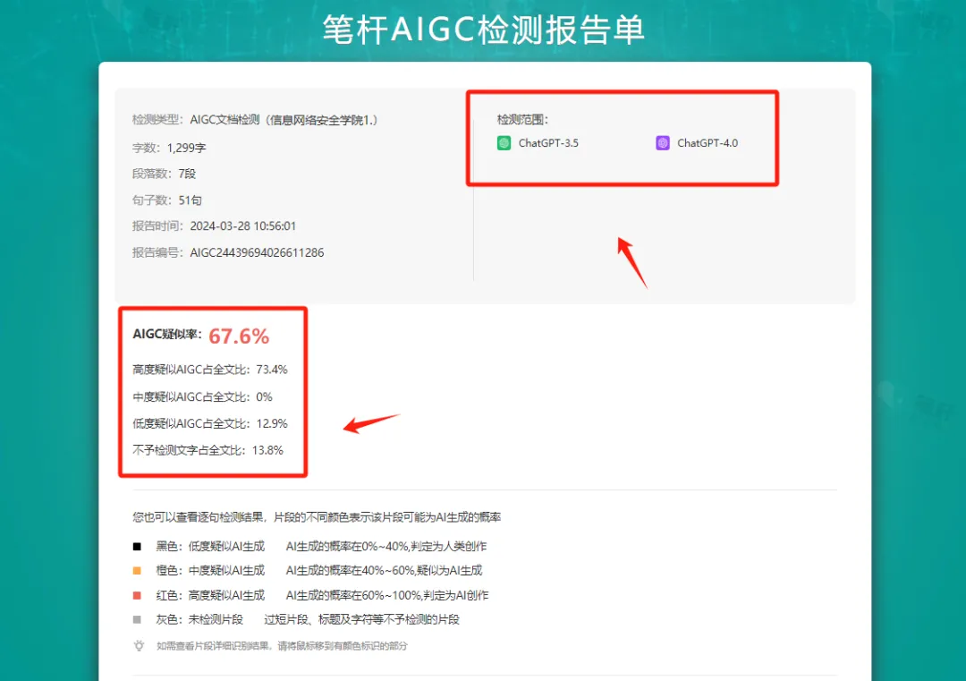 笔杆网的普通论文查重和AIGC检测功能各有特点,适用于不同的场景和需求。在学术写作中,我们不仅要关注文本的重复率,还要警惕AI生成内容可能带来的风险。笔杆网的AIGC检测功能能够帮助我们精准识别AI生成的内容,确保学术写作的真实性和原创性。