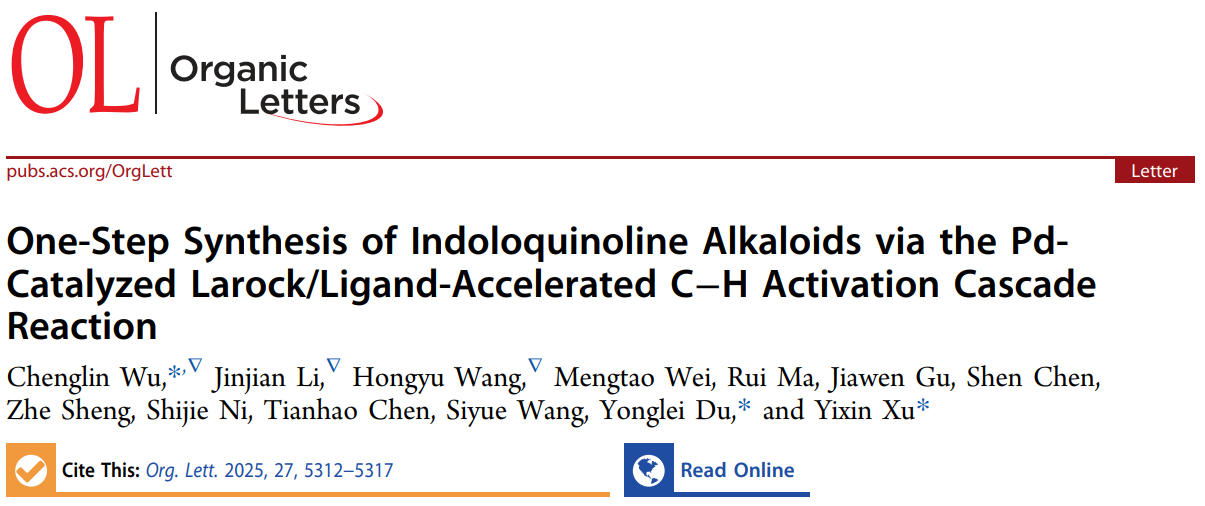 近日,永利官网药学院青年教师吴成林在国际权威期刊《Organic Letters》发表了题为《One-Step Synthesis of Indoloquinoline Alkaloids via the Pd-Catalyzed Larock/Ligand-Accelerated C−H Activation Cascade Reaction》的研究成果。传统构建吲哚并喹啉的方法主要包括:(1)基于逆合成分析,需要在该骨架上断裂一根化学键预先构建高度官能团化的吲哚或喹啉衍生物;(2)采用过渡金属催化的C−H键活化策略,通常需要在吲哚分子上引入吡啶、嘧啶、喹啉等导向基团。本研究以易得的邻碘苯胺和苯丙炔酰胺为原料,通过钯催化的一锅法级联反应,首先发生Larock反应原位构建酰胺化吲哚中间体,随后利用配体促进的C−H活化实现分子内环化。该策略的创新性体现在:a)使用廉价易得的原料;b)巧妙利用酰胺基团作为内源性导向基,避免额外引入导向基团;c)通过一锅法实现两步关键转化,显著提高了合成效率。该方法的建立简化了吲哚并喹啉的合成路线,同时提高了反应效率和原子经济性,为药物化学领域开发结构多样化的吲哚并喹啉类先导化合物提供了高效、实用的合成平台。