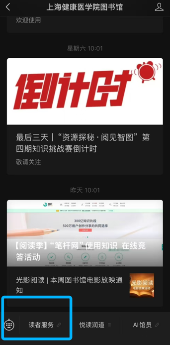 进入“永利集团88304官网图书馆微信公众号,点击“读者服务——我的借阅”