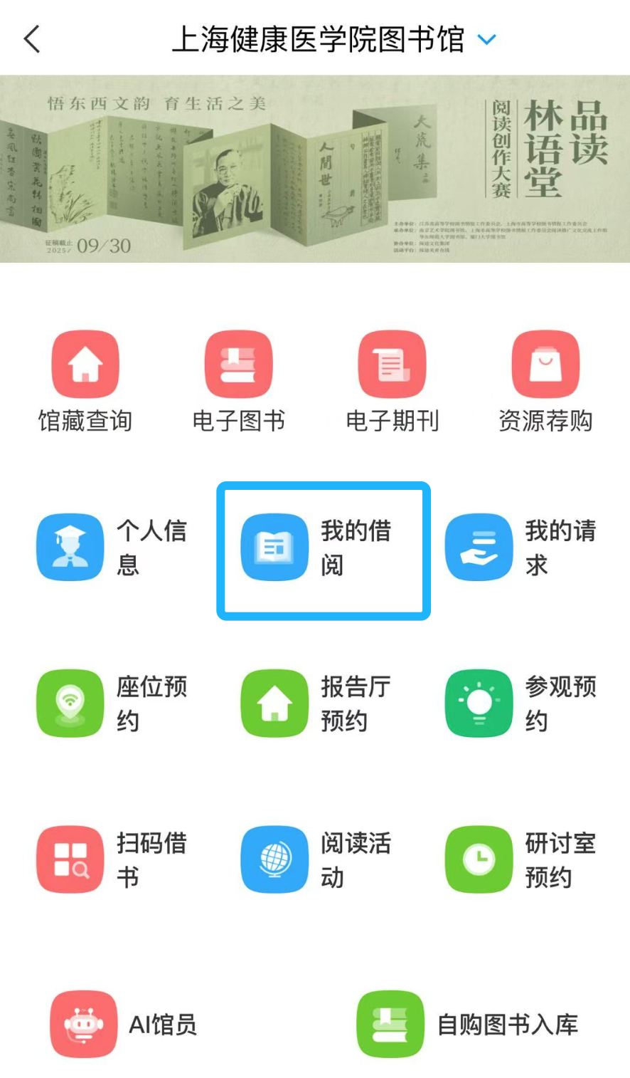 进入学习通,切换至“永利集团88304官网图书馆”,点击“我的借阅”
