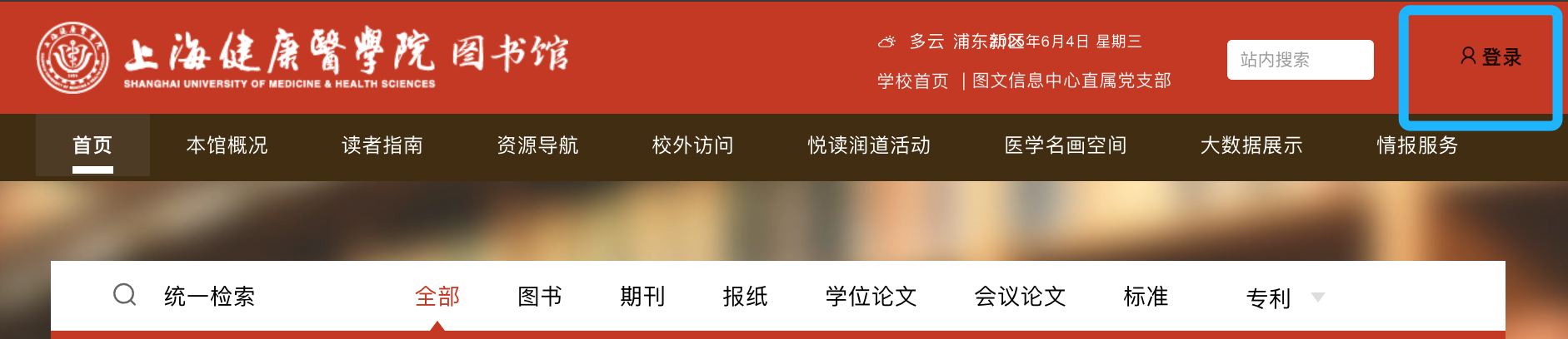 进入“图书馆主页(https://lib.sumhs.edu.cn/)”——“登录”(使用学校统一身份认证账户密码)——“进入空间”——“我的信息”——“我的借阅”。