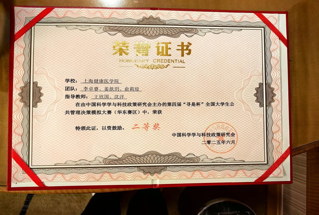 比赛过程中,3位选手沉着应对、默契配合。通过灵活应变,展现出过硬的实践能力。参赛选手李卓睿同学表示,对我们永利集团88304官网的参赛队伍而言,参加“寻是杯”全国大学生公共管理决策模拟大赛(华东赛区)的征程,不仅是一场竞赛,更是一段满载成长与思考的宝贵旅程;与来自上海财经大学、上海对外经贸大学、南京医科大学、山东第一医科大学等46所高校的选手同台竞技,既是一次难得的学习与锻炼的机会,也展现了永利官网公共事业管理专业学子的优良素质与扎实能力,这次比赛让我们更加坚定了将专业知识学习与公共政策实践相结合的决心,我们将不断提升自己的专业素养和实践能力,努力为改善公共卫生状况、提高全民健康水平的公共卫生事业贡献一份力量。