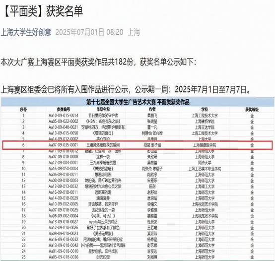 全国大学生广告艺术大赛由教育部高等教育司指导的全国性A类竞赛(教育部榜单排名第10名),以规模大、覆盖广、参赛人数多、作品水平高、社会影响力大而著称。2025年第十七届全国大学生广告艺术大赛,以“创意有我正青春”为主题,覆盖16个命题方向,吸引了众多上海高校学子积极参与比赛,共征集作品6081件,全方位展现出当代大学生的创意才华与专业素养。