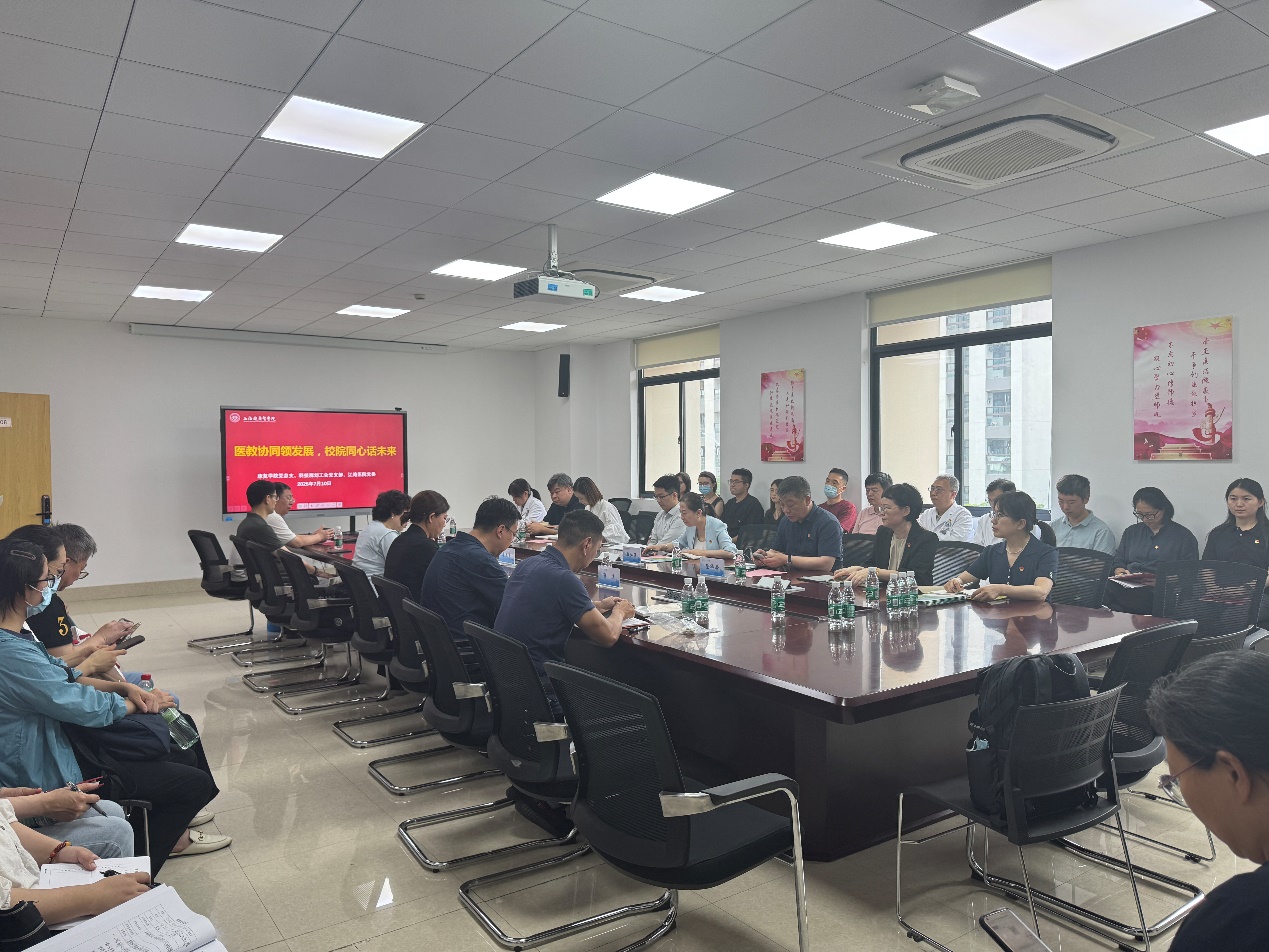 为深化医教协同,推动党建与业务深度融合,7月10日下午,康复学院党总支、科技规划工会党支部与上海市虹口区江湾医院党委在康复学院308会议室联合开展“医教协同领发展,校院同心话未来”联组学习活动。校党委副书记于莹,康复学院党总支党员、科技规划工会党支部党员、江湾医院党委中心组成员及专家代表齐聚一堂,共话合作新篇。活动由康复学院党总支书记王红主持。