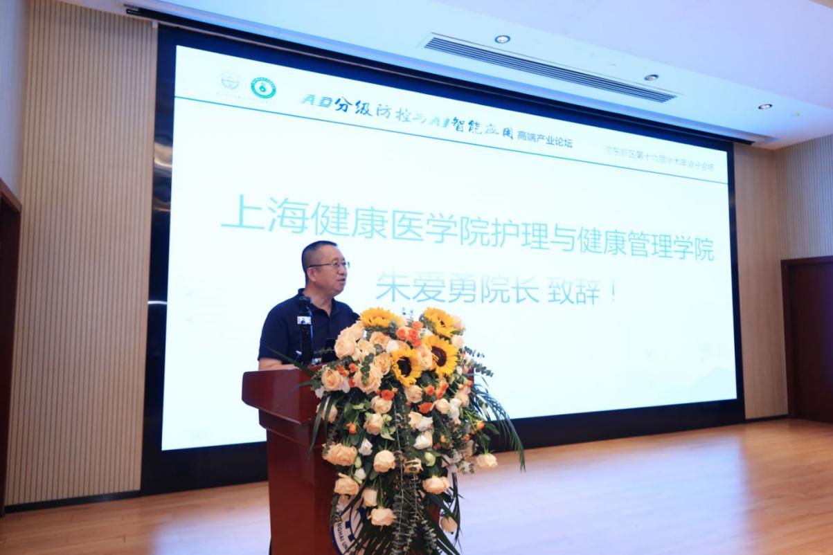 永利集团88304官网护理与健康管理学院院长朱爱勇、上海市浦东新区民政局社会组织管理处处长李红、上海市浦东新区科学技术协会党组书记、常务副主席顾兵为大会致辞。朱爱勇系统阐述学院在AD防控领域的学科布局与实践,彰显健康服务院校的民生担当,以学科创新与人才培养破题AD防控:针对传统医疗局限,聚焦“医工、医养、医保”三结合,构建“产学研赛扶创六位一体、数字智慧化赋能”的健康照护人才体系;重点聚焦AD早期筛查、干预与照护领域,以学科创新回应民生健康关切;推动中医药与现代护理融合,与浦东中医药协会共建实践基地,输送专业人才储备AD防控力量。朱爱勇表示,论坛是学院学科建设的激励与师生学习契机,学院将以论坛为纽带深化合作,升级AD防控研究与人才培养,贡献“护管力量”。