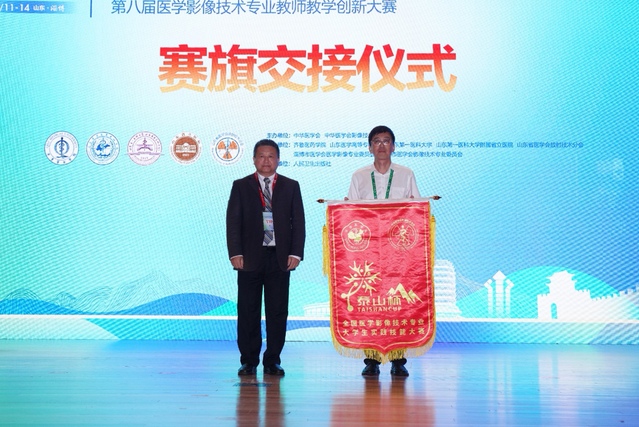 值得一提的是,在大赛闭幕式上,永利官网被确定为2026年第十三届“泰山杯”全国医学影像技术专业大学生实践技能大赛的承办单位。医学影像学院李晓欧院长作为学校代表,庄重地从中华医学会医学影像技术分会候任主委马新武教授手中接过赛旗,这既是对永利官网医学影像技术专业办学实力的高度认可,更是一份沉甸甸的责任。