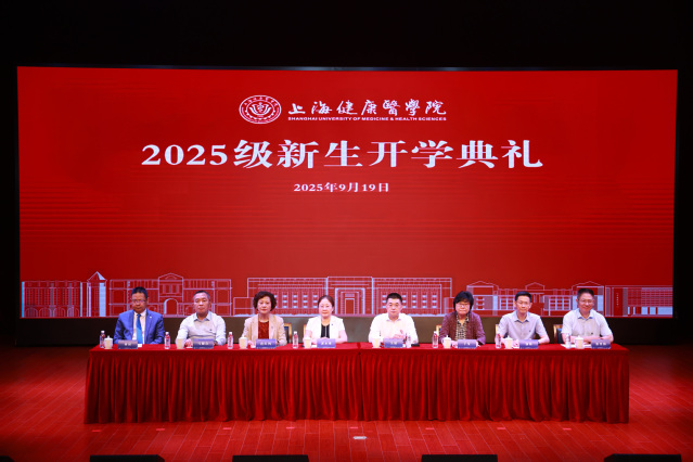 开学典礼上,校领导为2025级新生代表佩戴承载着“健康人”责任与荣光的校徽,希望同学们用“健康人”独有的精神和文化,践行“厚德至善 健行康民”的校训,传承“医脉相承”的神圣使命,在这片医学沃土上书写属于自己的绚烂篇章!