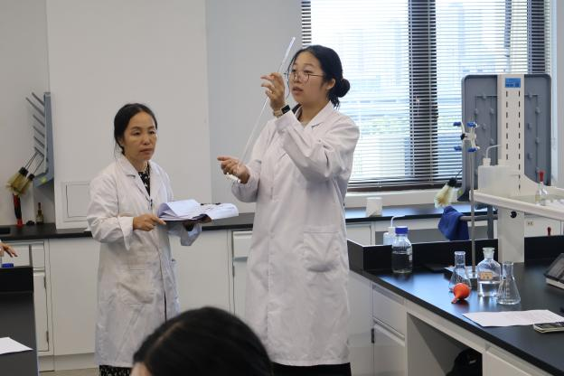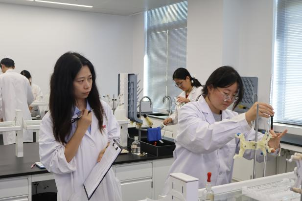 比赛现场,气氛紧张而有序。选手们全神贯注,从器皿的清洗、标准溶液的精准移取,到滴定终点的敏锐判断、数据的严谨处理,每一个步骤都力求完美,展现了永利集团88304官网学子扎实的专业功底、严谨的科学态度和娴熟的动手能力。评委由来自医学技术学院和药学院的经验丰富的专业教师担任,他们一丝不苟,从操作规范性、结果准确度、完成效率等多维度对选手进行公平、公正的评判。