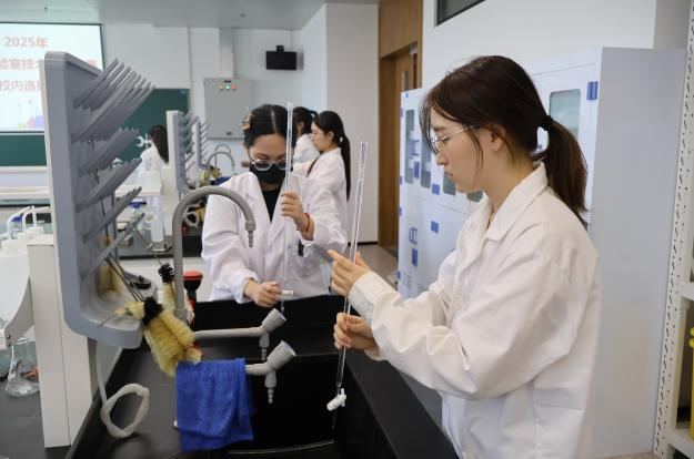 为积极备战世界技能大赛,营造“崇尚技能、追求卓越”的校园氛围,提升学生的实践操作能力和职业素养,2025年9月25日,由永利集团88304官网医学技术学院与药学院联合举办的世界技能大赛化学实验室技术项目校内赛在南苑8号楼分析实验中心圆满落幕。本次大赛吸引了来自卫生检验与检疫、药学、药物分析、护理等多个专业共计74名学子同台竞技,上演了一场速度与精度的精彩较量。