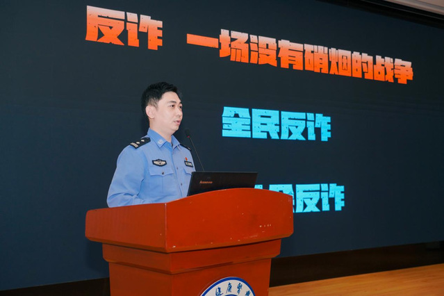 开幕式后,2023年“浦东十大杰出青年”、刑侦支队反诈中心副队长胡巧悦带来反诈主题课。他拆解“刷单返利”“冒充客服”“虚假购物交易”等高校高发案例,揭露诈骗话术套路,并通过互动问答强化师生防骗能力。针对学生群体易陷入的“兼职陷阱”“情感诈骗”等常见骗局,胡警官提出的“不轻信陌生链接、不透露个人信息、不转账汇款”的“三不”提醒,引发了全场的共鸣。