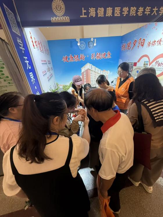 展区围绕“健康银龄·引领健康”的理念,分“主动健康·关爱你我”与“拥抱夕阳——陪你慢慢变老”两大版块,以明快清新的设计和互动体验吸引了众多观众驻足咨询,积极报名秋季课程。其中,“主动健康·关爱你我”系列展现了学校在健康照护、康复养生、营养指导等方面的教学成果与服务场景,充分体现“健康+教育”的融合理念,赢得现场嘉宾与市民的广泛好评。“拥抱夕阳——陪你慢慢变老”版块着重介绍即将推出的《今天开始把自己重养一遍——中老年身心怡养系列课程》,旨在以积极心理学为核心理念,帮助老年学习者通过情绪调适和心理赋能实现“身心共养”。老年心理课程依托上海市心理学会落地永利官网的“生命教育研训实践基地”,助力老人心理健康理念走进课堂、走进社区、走进大众,真正服务于“健康中国”战略的落地与实施。