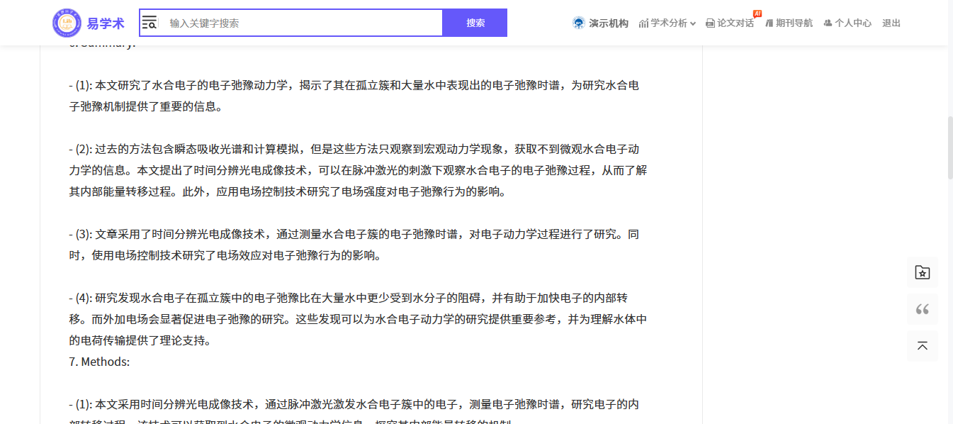 文献获取方式一:用户直接点击已确认的文献链接地址可全面获取该文献全貌,包括如下信息:作者、摘要。并提供该文献全文目录、全文图表、作者详情、文章总结并提供全文下载。同时向用户提供相似文献、参考文献、引证文献、同刊同期相关信息。